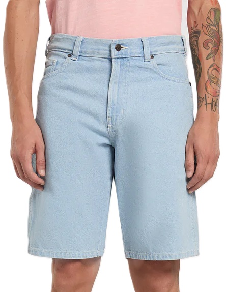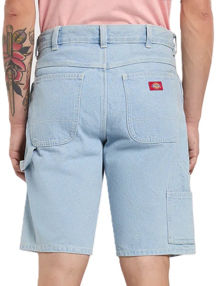 Bermudas tejanas DICKIES 993 11 INCH CARPENTER – Vintage Aged Blue para hombre con cinco bolsillos y cintura con trabillas para cinturón