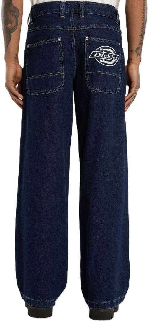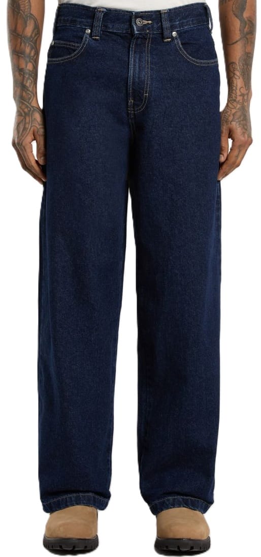 Pantalón DICKIES HILHAM DEMIN – Dark Indigo de corte extra ancho y pierna recta en denim pesado. 100 % algodón para máxima durabilidad y estilo workwear.