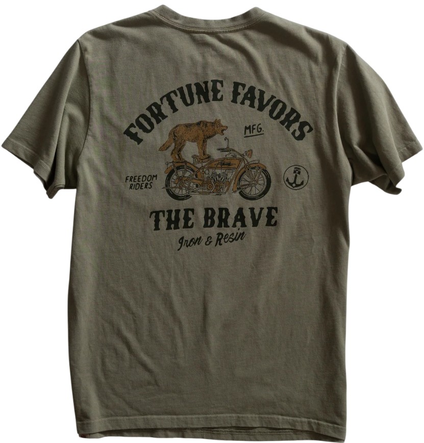 Camiseta de algodón IRON AND RESIN FORTUNE FOR THE BOLD POCKET – Green de manga corta con un práctico bolsillo
